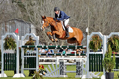 Tomorrow is Mardi Gras and the festivities started early for Wilhelm Genn of Lebanon, Ohio and his own Happy Z who bested twenty two horse and rider teams in yesterday’s $50,000 Budweiser Grand Prix designed by Allen Rheinheimer of Zionsville, Indiana. Only three first rounds emerged clean. As a matter fact, it took five rounds to get a clean round, and it was Wilhelm Genn in the irons of his own Happy Z who showed the crowd it could be done, setting the time to beat at 89.328 seconds.